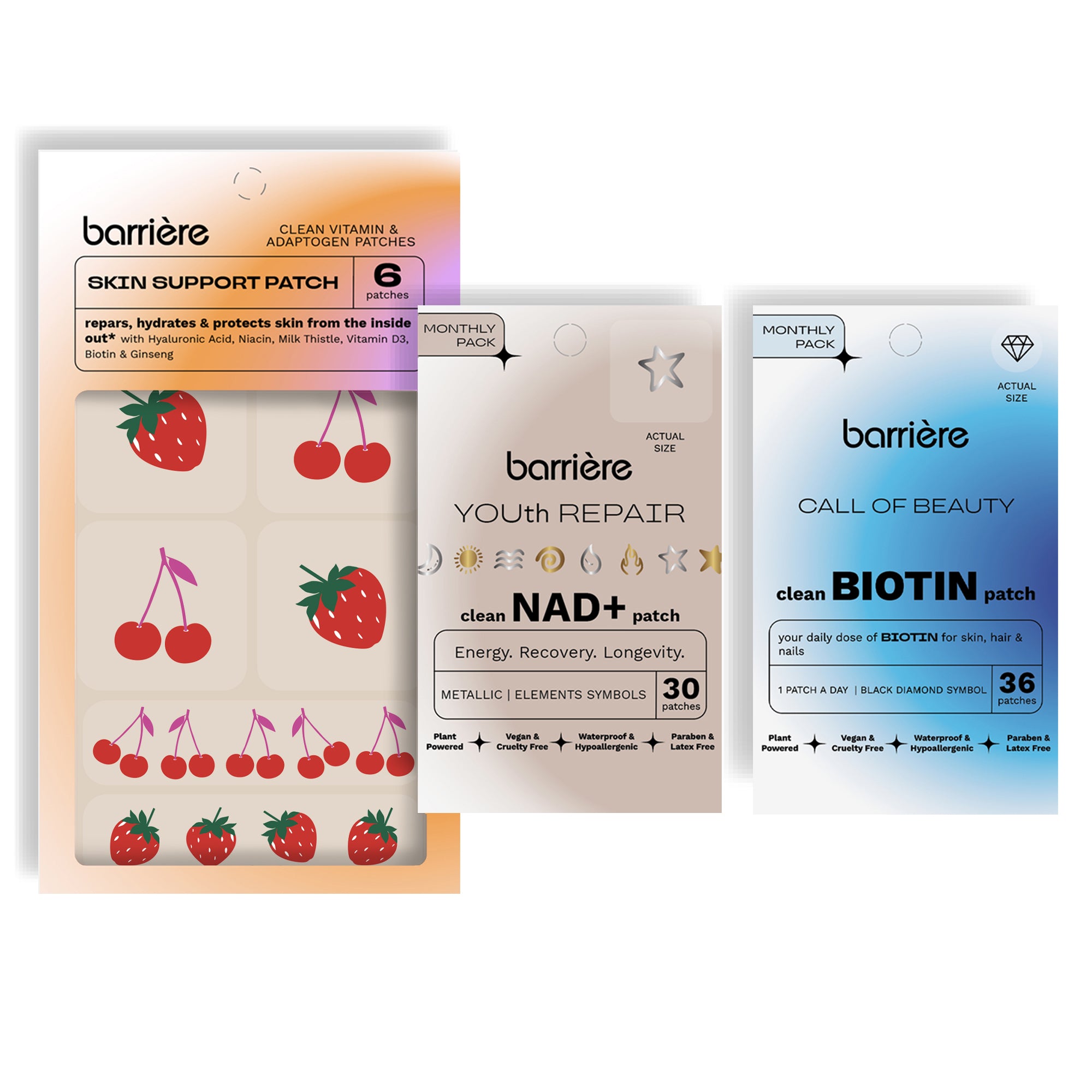 Continue shoppingA curated trio of vitamin patches designed to support radiant skin, healthy hair, and cellular energy—so you can glow from the inside out.