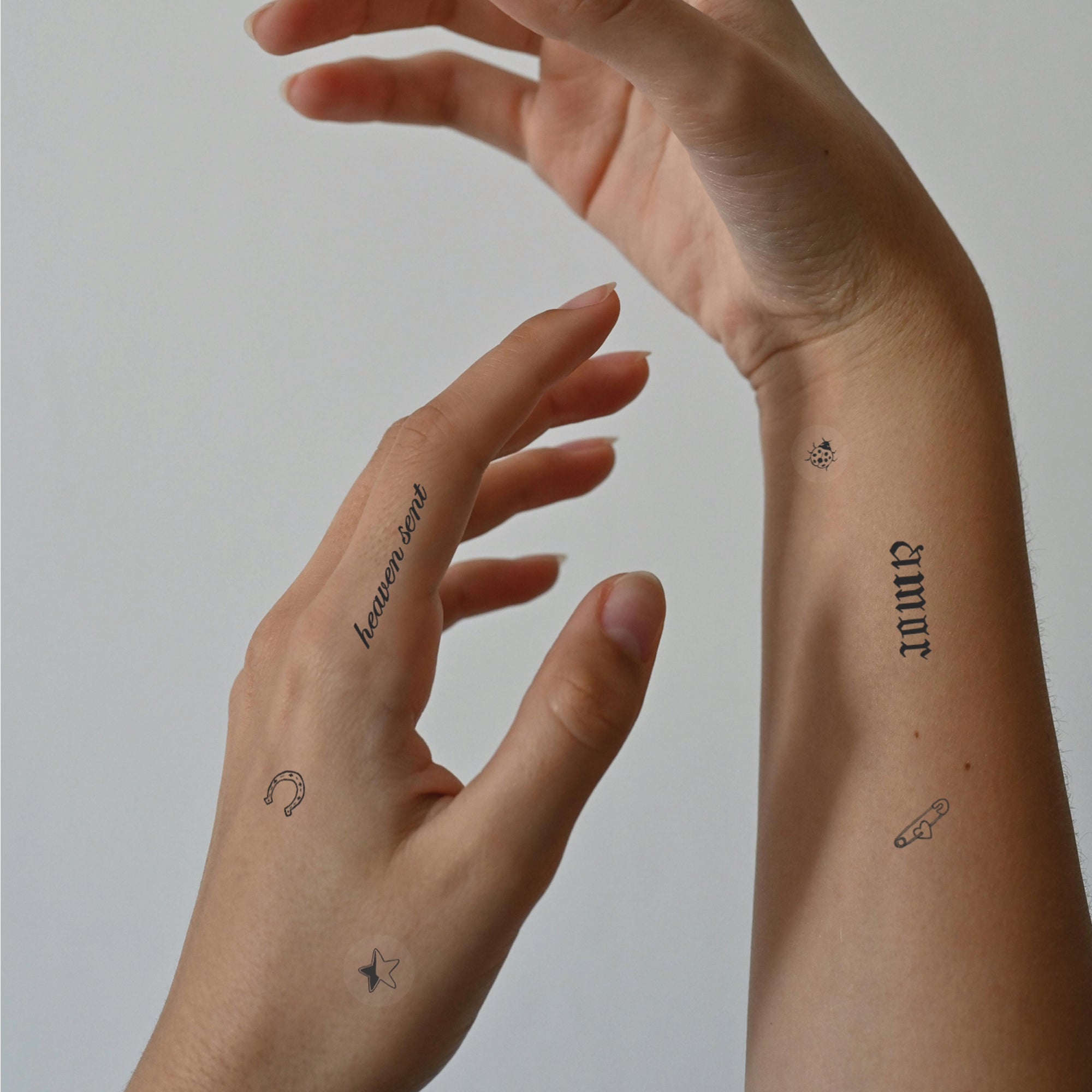 - Press & Wet: Press the tattoo face down on skin, wet the back of the tattoo paper with water until soaked through, and apply pressure while holding the tattoo still for 10 seconds.